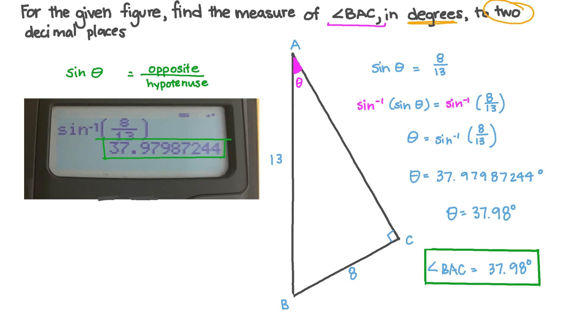 Question Video Finding The Unknown Angle In A Right Triangle Using Trigonometry Nagwa